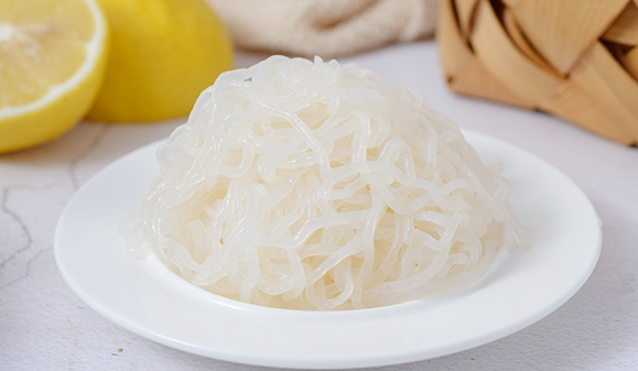 美味大膽嗦,解饞無腹擔。魔芋粉絲晶瑩透亮,含有葡甘聚糖,具有強大的膨脹力,產生飽腹感。